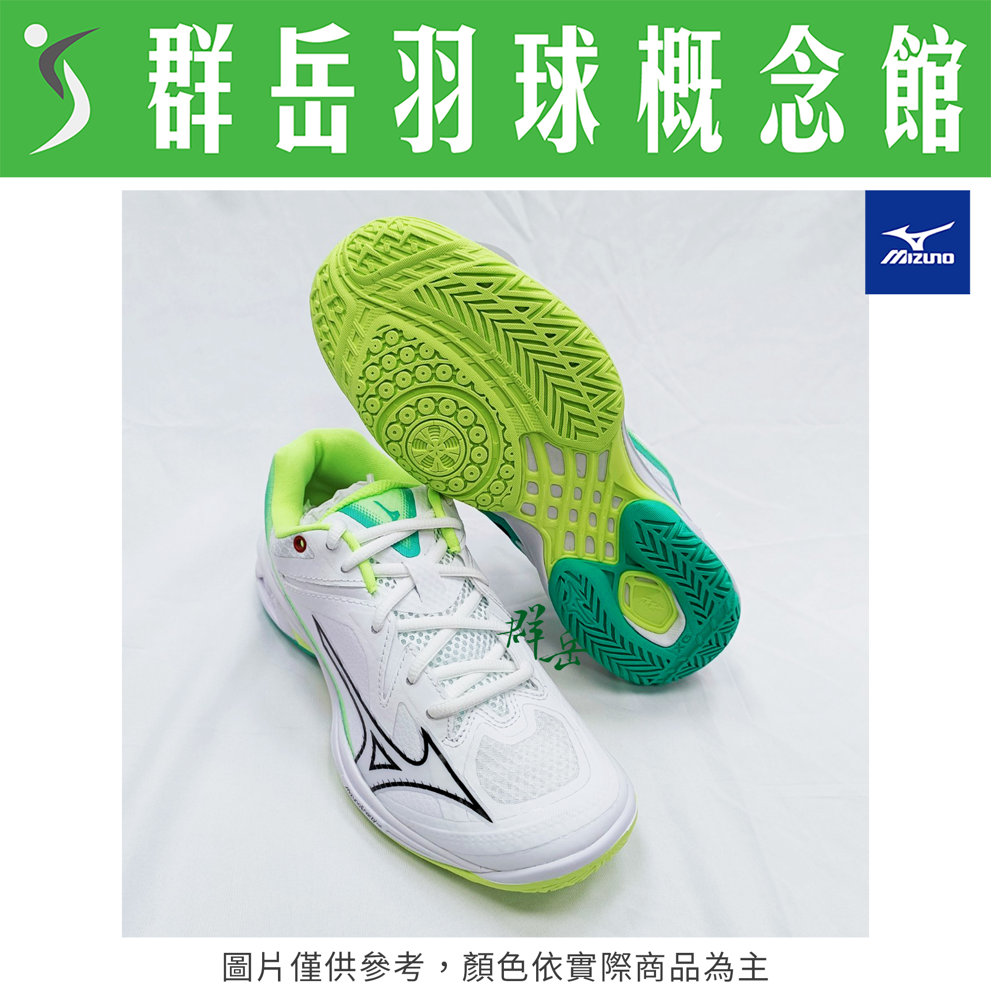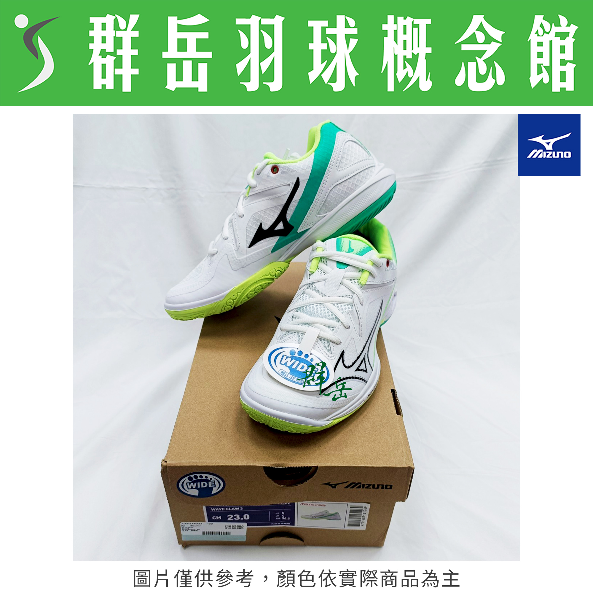 MIZUNO美津濃【WAVE】71GA244322 白綠 寬楦 男女款 羽球鞋 排球鞋 CLAW3